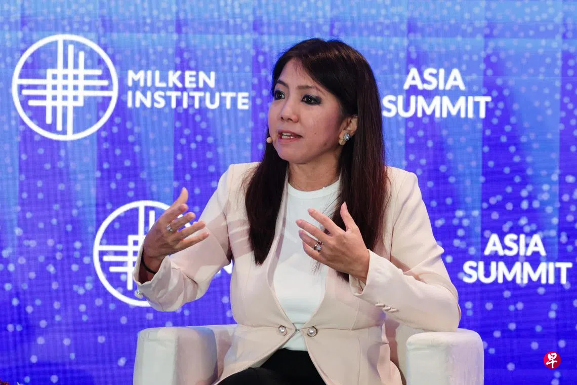 陈淑珊星期三(9月18日)出席米尔肯研究所亚洲峰会研讨会时强调,星展集团已在2022年实现碳中和目标,并计划到2030年在新加坡的业务完全依赖可再生能源。
