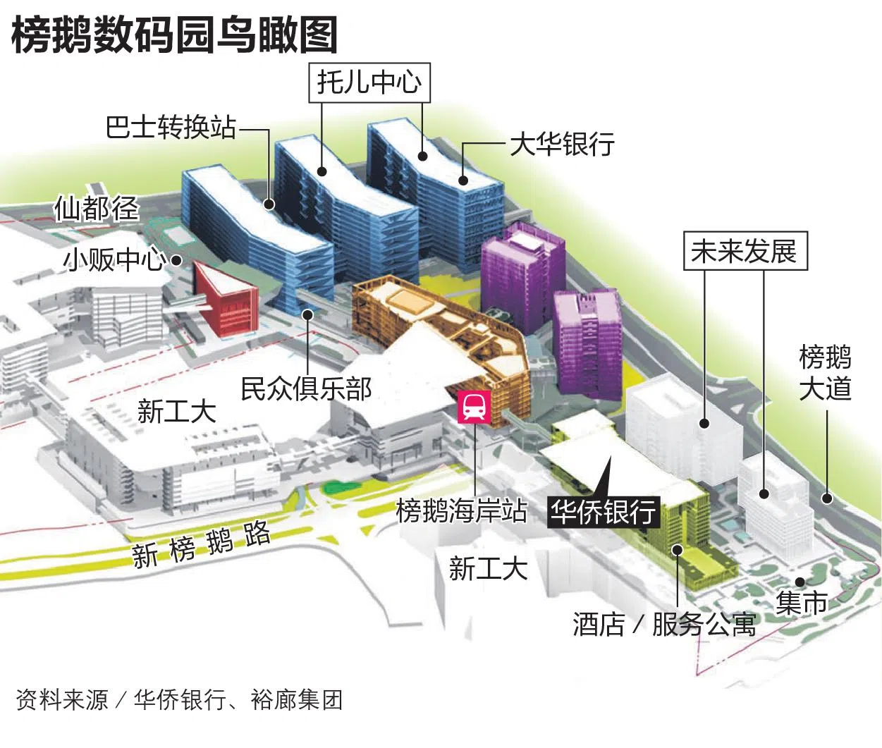 除了华侨银行,大华银行此前也宣布,将投资超过5亿多元在榜鹅数码园区建造全球科技与创新中心,2026年落成后将有约3000名科技人员在此工作。
