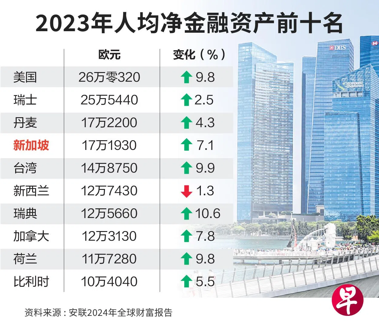 尽管全球经济面临紧缩的挑战,我国2023年人均金融资产净值同比增加7.1%至17万1930欧元(24万7000新元),继续保持亚洲最富有的经济体地位。