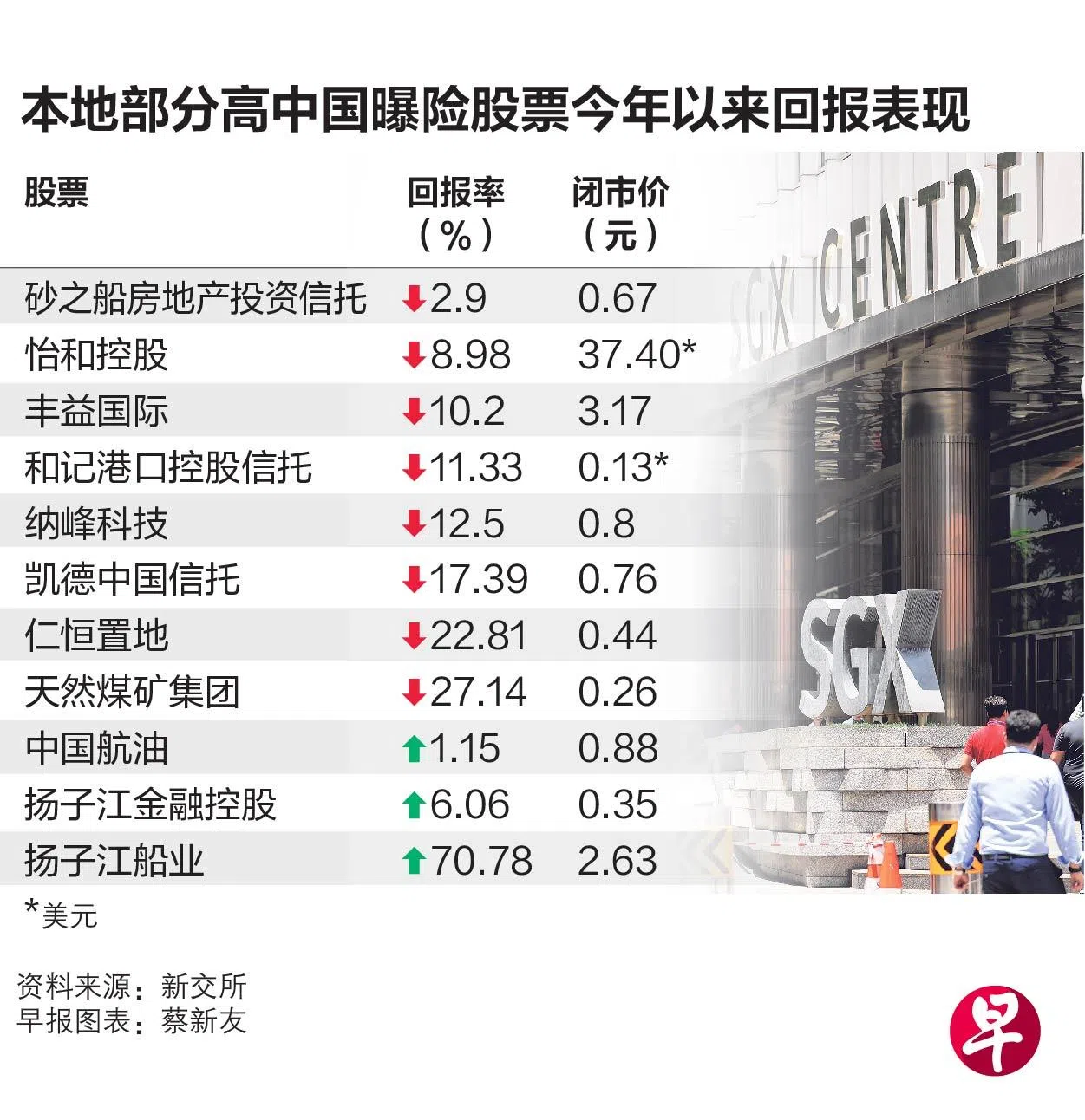 根据新加坡交易所(SGX)提供的信息,本地上市公司中,包括扬子江船业(Yangzijiang Shipbuilding)、扬子江金融控股(Yangzijiang Financial Holding)、以及砂之船房地产投资信托(Sasseur REIT)等均有中国业务曝险。其中扬子江船业今年以来的涨幅高达70.78%。
