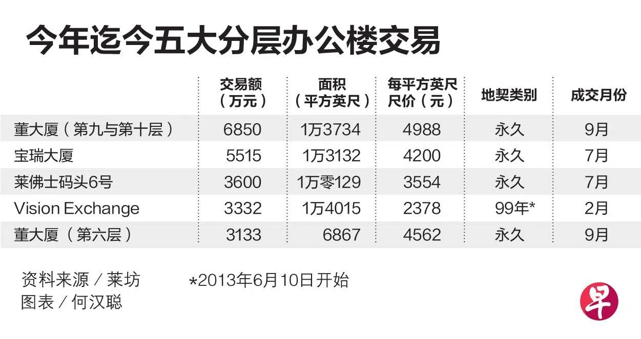 近期完成数宗大型交易后,我国分层地契办公楼市场在经历了两年的沉寂后重新活跃,分析师预计,今年的交易总额可达10亿元。