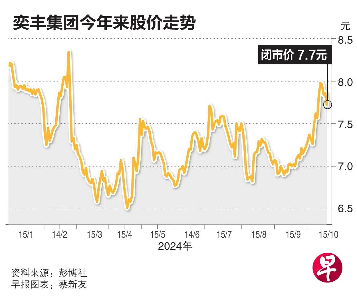 奕丰集团星期一股价下跌1.5%,本周以来跌3.3%,星期三(16日)收报7.7元。