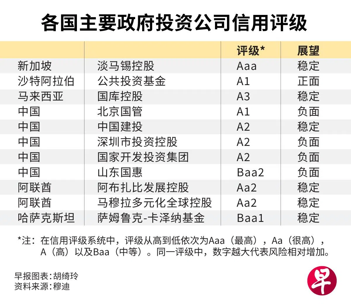 国际评级机构穆迪(Moody’s)上星期四(10月17日)发布的报告指出,淡马锡控股和沙特阿拉伯主权财富基金公共投资基金(PIF)在11家评级同行中拥有最强的信用指标。其中,淡马锡获评最高的Aaa等级。