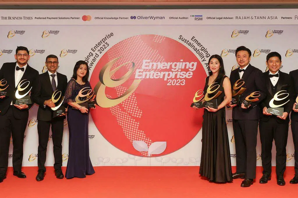 荣获本届新兴企业奖的公司包括新加坡美容服务公司Kskin Management、医疗集团Pancare Medical,以及香港人工智能公司有光科技(Fano Labs)。本地海事公司Pyxis、拼车巴士服务商RushOwl,以及印尼可持续材料社企Plana则荣获新兴企业可持续发展奖。