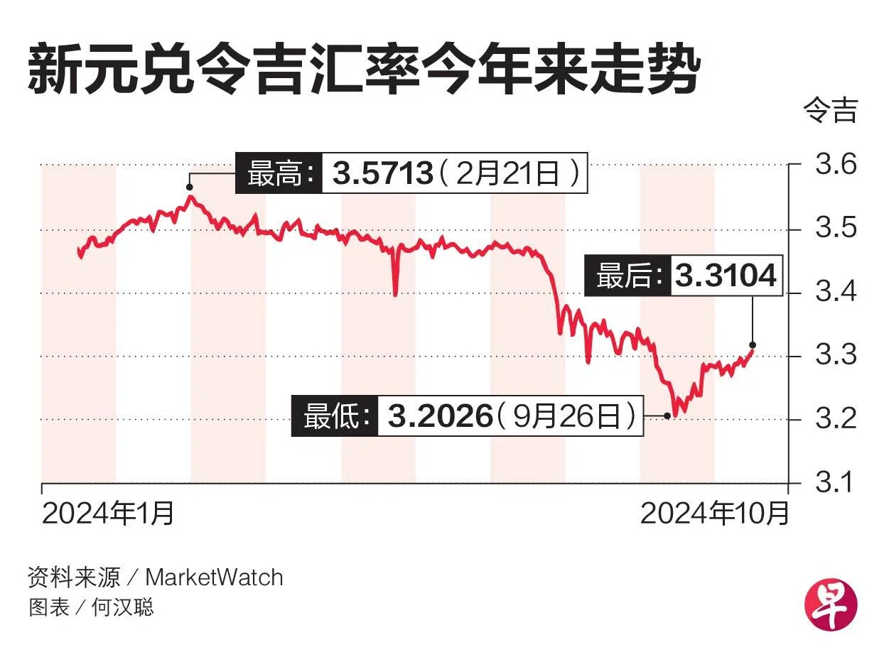 三菱日联银行资深货币分析师陈进来受访时说:“令吉市场情绪的急剧变化,导致新元兑令吉汇率大幅波动。自10月初以来,市场已降低对美国联邦储备局降息步伐的预期,同时消化特朗普第二次当选总统的风险。特朗普2.0可能会对中国征收更高的关税,对马来西亚经济产生巨大的溢出影响。”