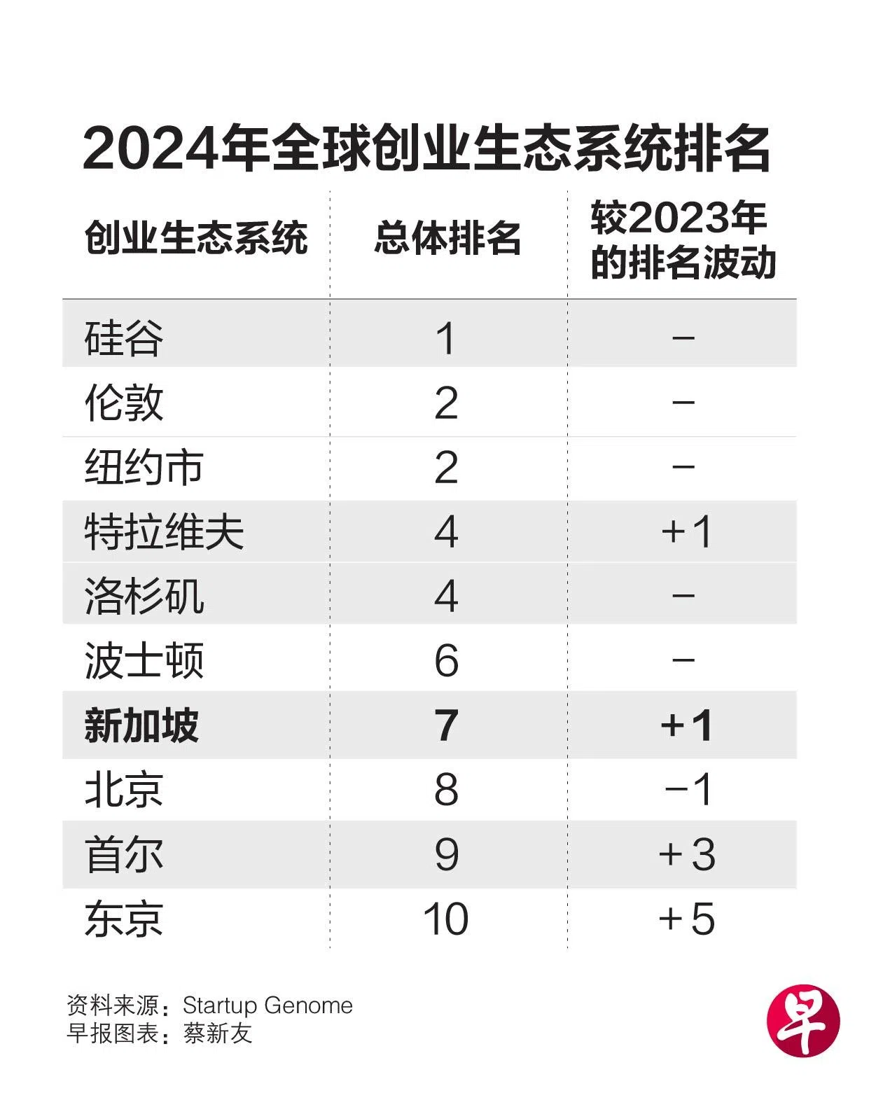新加坡凭借着充满活力的亲商氛围和触达亚洲市场的便利地理位置,在亚洲创业生态系统中排名第一,全球排名第七,较去年上升了一个名次。