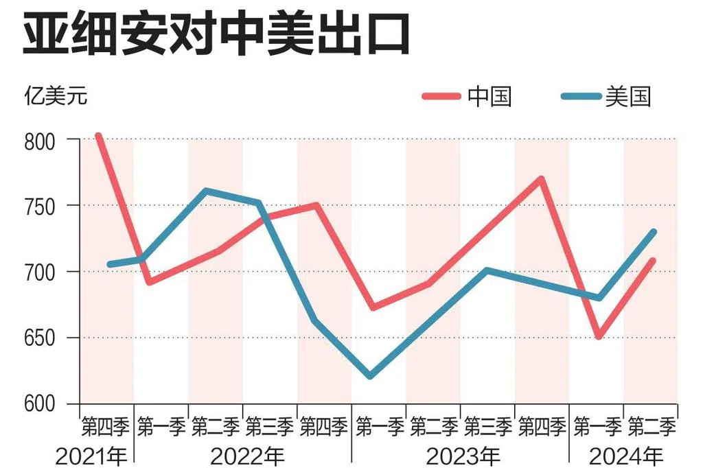 斯里尼瓦桑说,与五年前相比,中国更多地向新兴市场出口、更少地向发达国家出口;亚细安国家则更多出口到中美,这是紧张局势下部分贸易绕道第三国的结果。“但这样做的成本高昂,贸易分化会让全球经济增长放缓,没有一个国家会从中受益。”