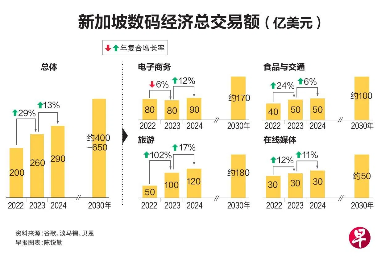 全球经济逐步改善,东南亚的数码经济在2024年实现显著增长,总交易额(GMV)预计达到2630亿美元(约3469亿新元),同比上升15%,但较去年的17%有所放缓。