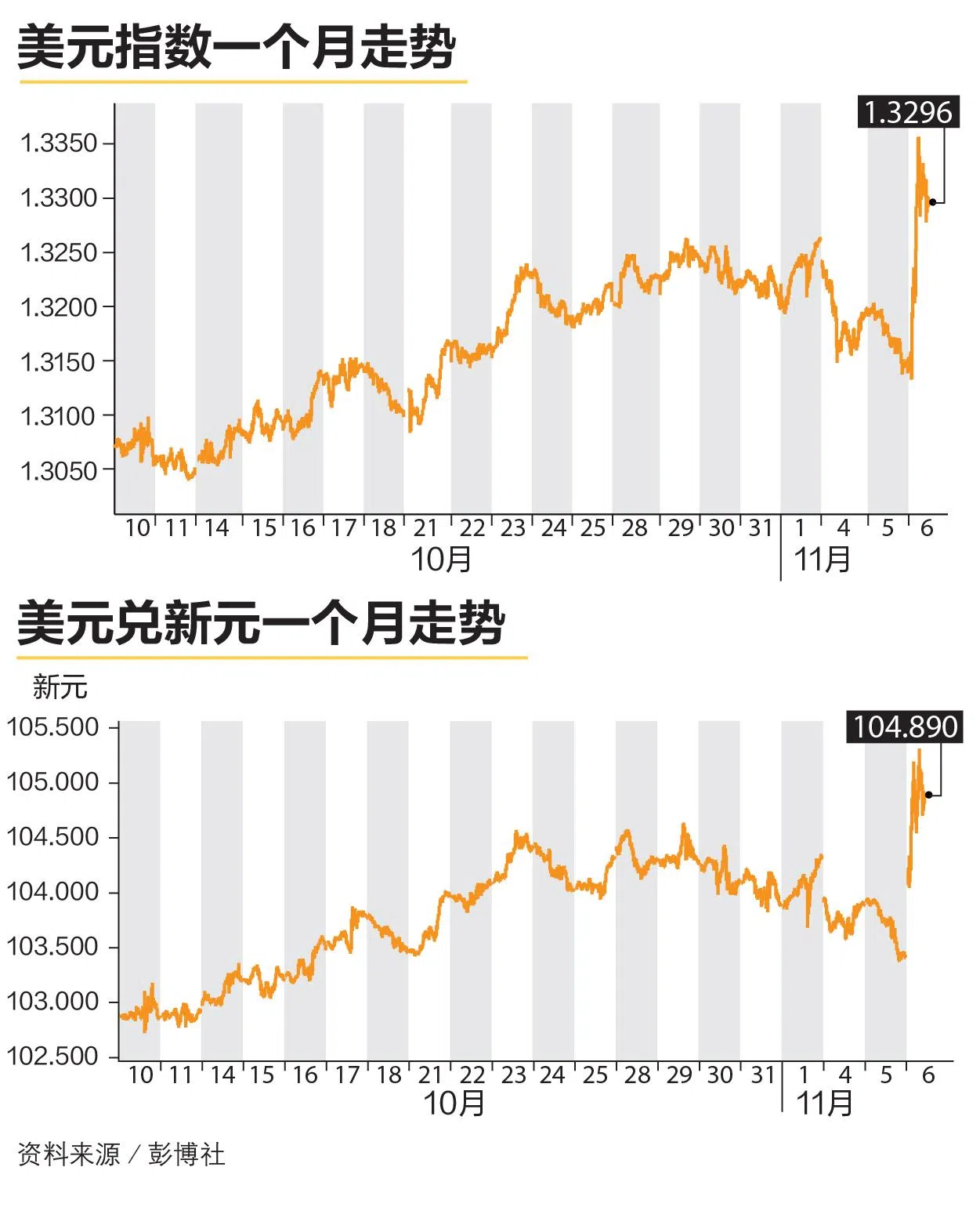 特朗普赢得美国总统大选,美元强势走高,兑新元重新回到1.33水平。分析师指出,中美紧张关系或进一步加剧,新兴市场货币将面临贬值压力。