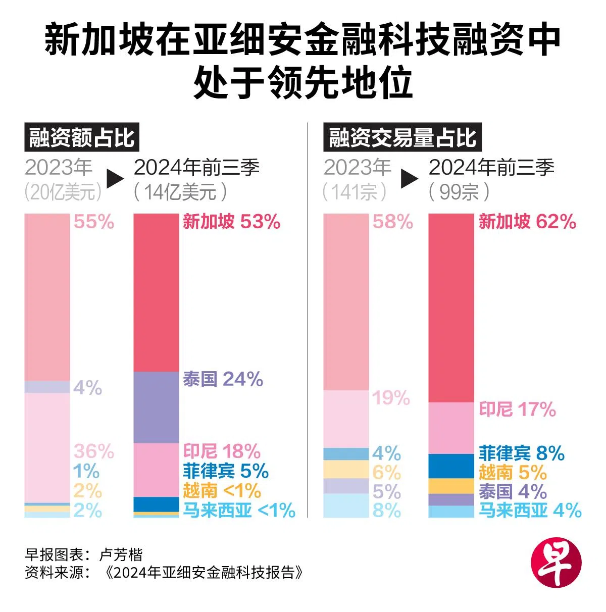 大华银行、普华永道(PwC)和新加坡金融科技协会(SFA)星期三(11月6日)联合发布的《2024年亚细安金融科技报告》显示,尽管近年来全球经济形势不明朗,亚细安六国的金融科技投资依旧表现出韧性,2024年前三季度的融资总额达14亿1000万美元(约18亿8000万新元),占全球金融科技融资的4%,同比增长1个百分点。