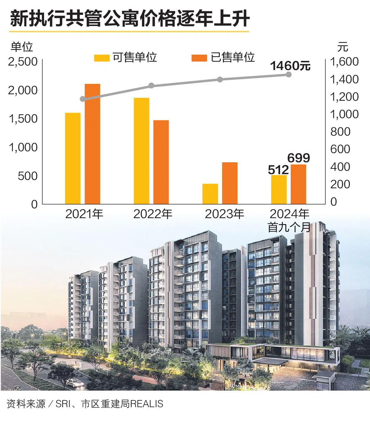 根据房地产经纪公司SRI星期四(11月7日)发布的最新研究报告,新执行共管公寓(Executive Condomnium,简称EC)在2022年的每平方英尺平均价格为1329元,但在一年后增长5.8%至1406元。