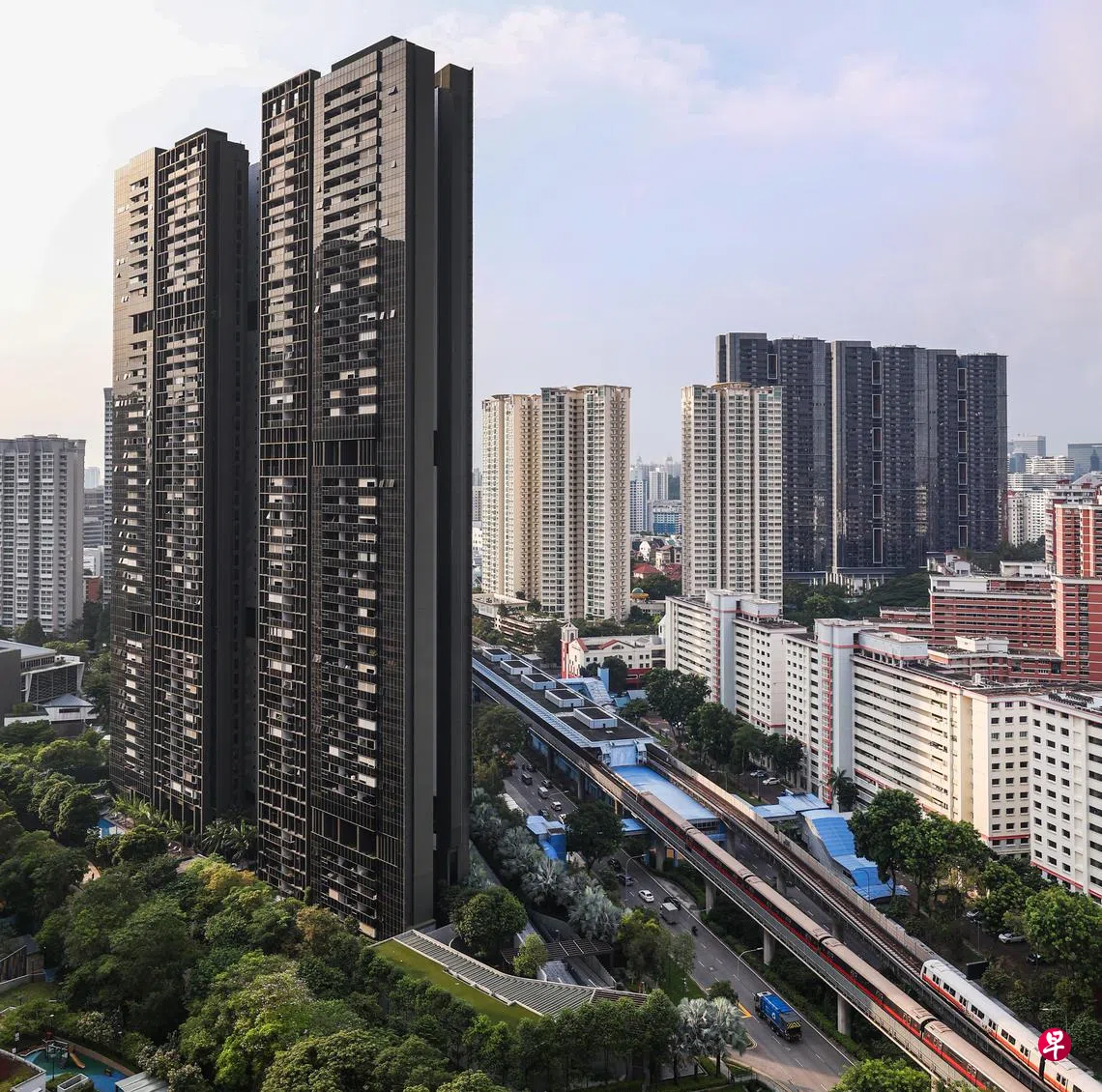在地铁周边的私宅项目中,最新的是2022年完工的尚景苑(Stirling Residences)。它共有1259个单位,楼高40层,目前也是女皇镇一带最受欢迎的转售项目。
