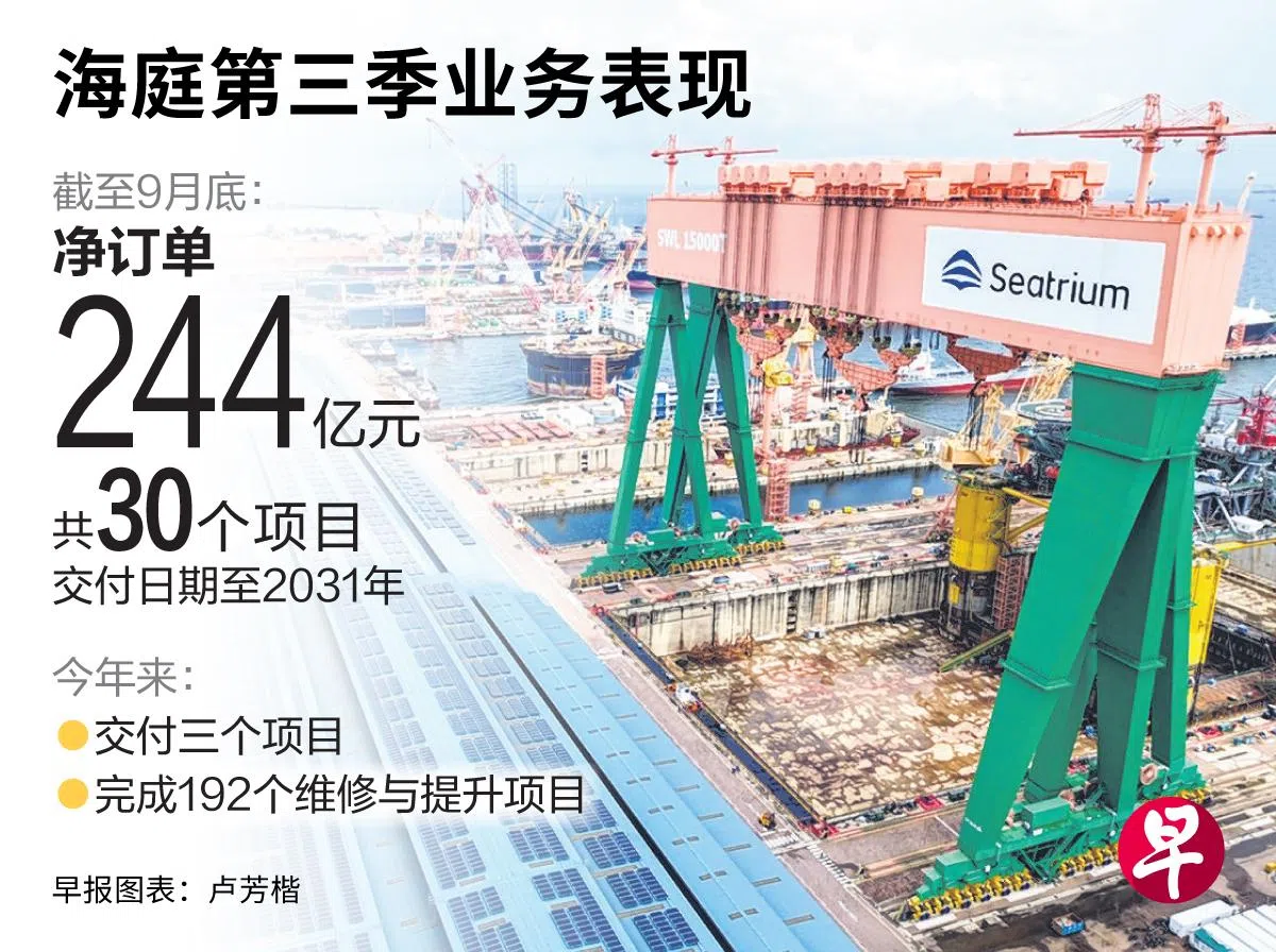 海庭(Seatrium)截至9月底净订单额达到244亿元,共有30个项目,交付期延续至2031年。此外,这家在美国拥有可观业务的岸外与海事工程公司星期一(11月11日)早上在第三季业务发布会上受询时表示,特朗普政府的政策走向预计不会对海庭的美国业务产生重大影响,公司也不认为美国的项目会面临进一步取消的风险。