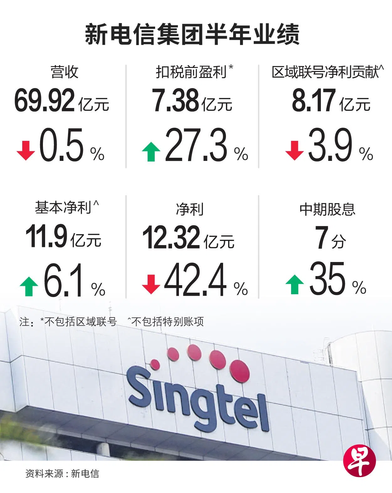 新加坡电信集团(Singtel)上半年净利同比大跌42.4%至12亿3200万元,但它将派发的中期股息大增35%至每股7分,包括1.4分的“价值实现股息”,而且宣布今后价值实现股息每半年将派发一次。