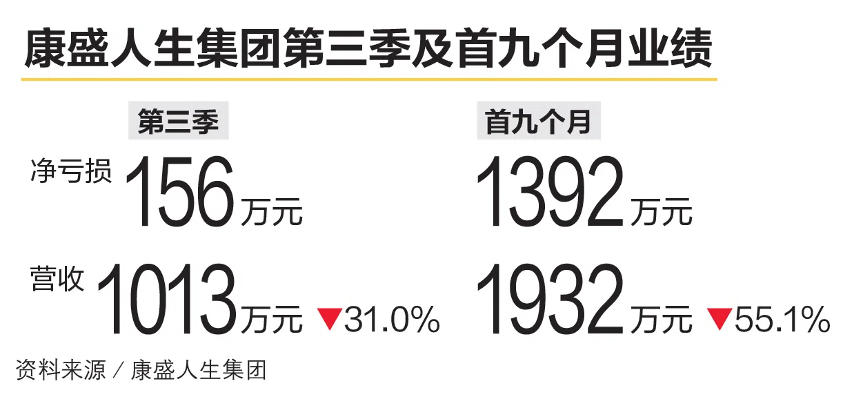 今年首九个月,集团净亏损达1392万元,去年同期则取得净利362万元。首九个月营收为1932万元,同比大跌55.1%。