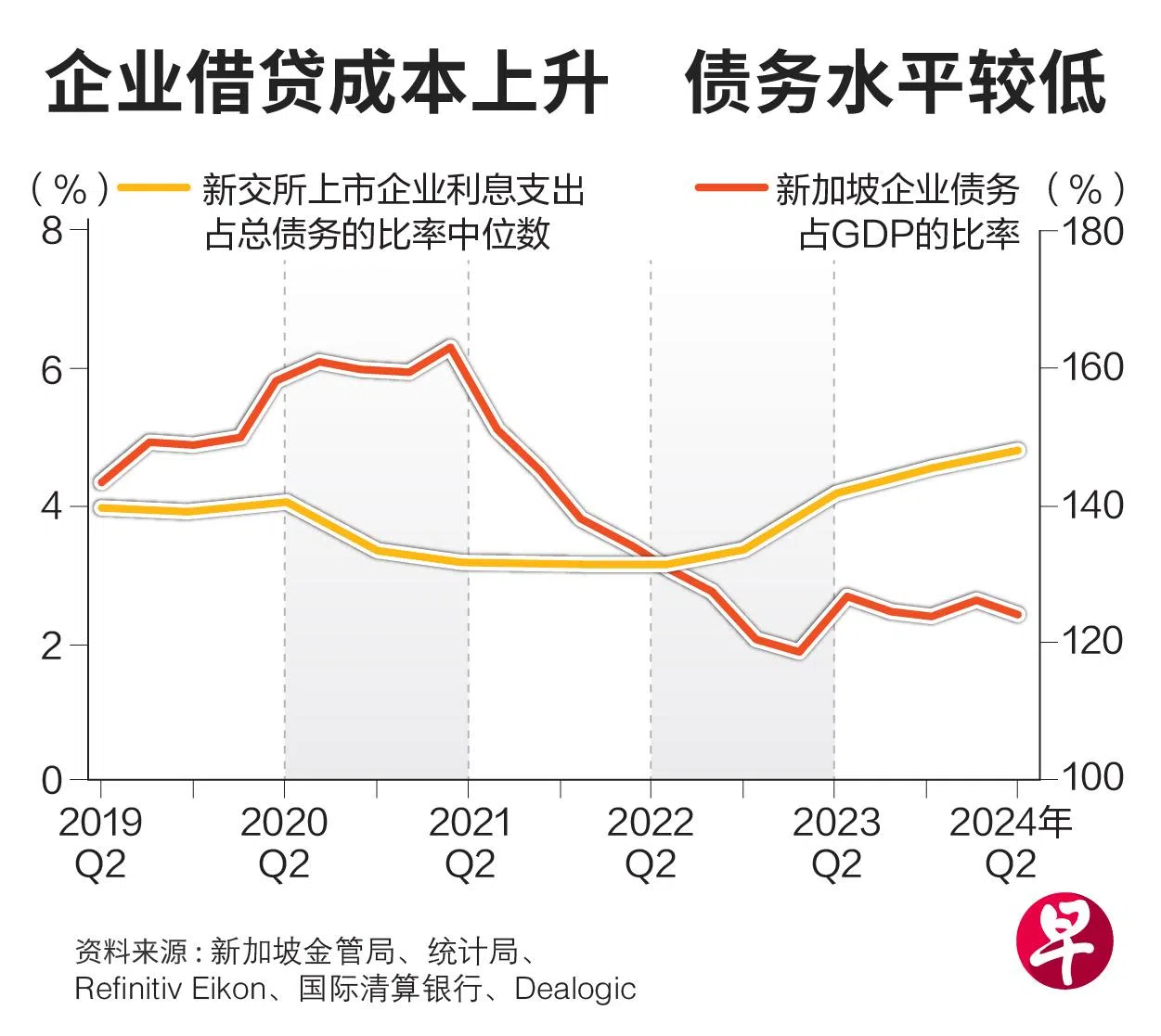 在高利率环境下,过去一年新加坡企业的盈利能力下降,但同时借贷成本却进一步上升。不过,企业债务水平仍显著低于疫前,企业偿债能力仍具韧性。