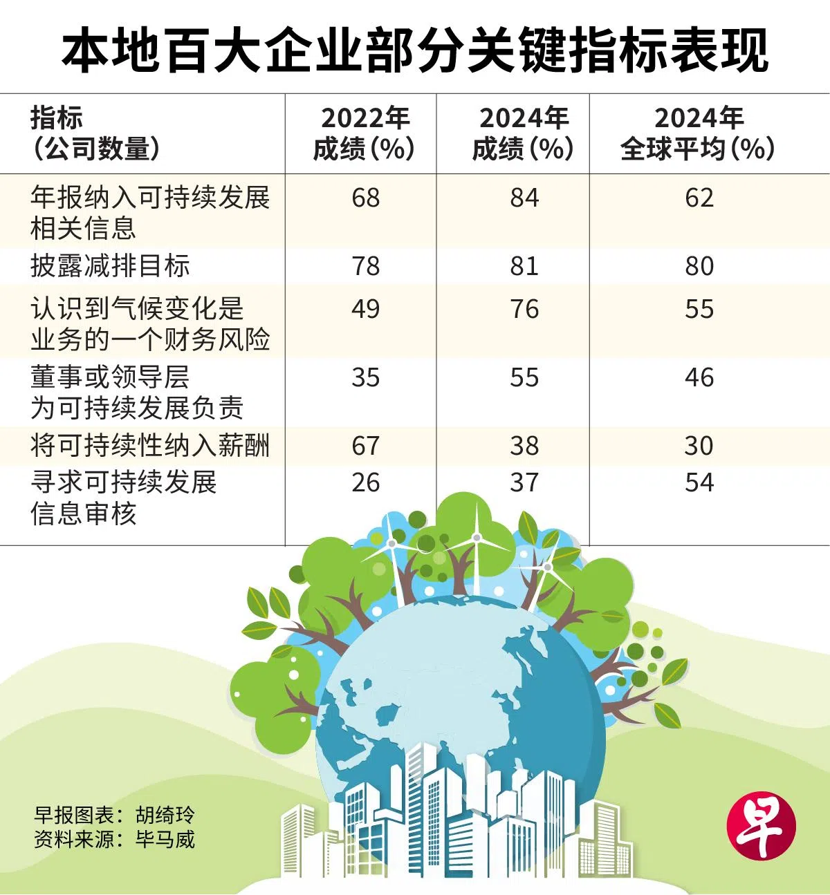 根据毕马威(KPMG)星期四(11月28日)最新发布的2024年可持续报告调查结果,目前有84%的新加坡企业将环境、社会和治理(ESG)信息纳入年度报告,高于2022年同一个调查的68%,也大大超越了2024年全球62%的平均水平。