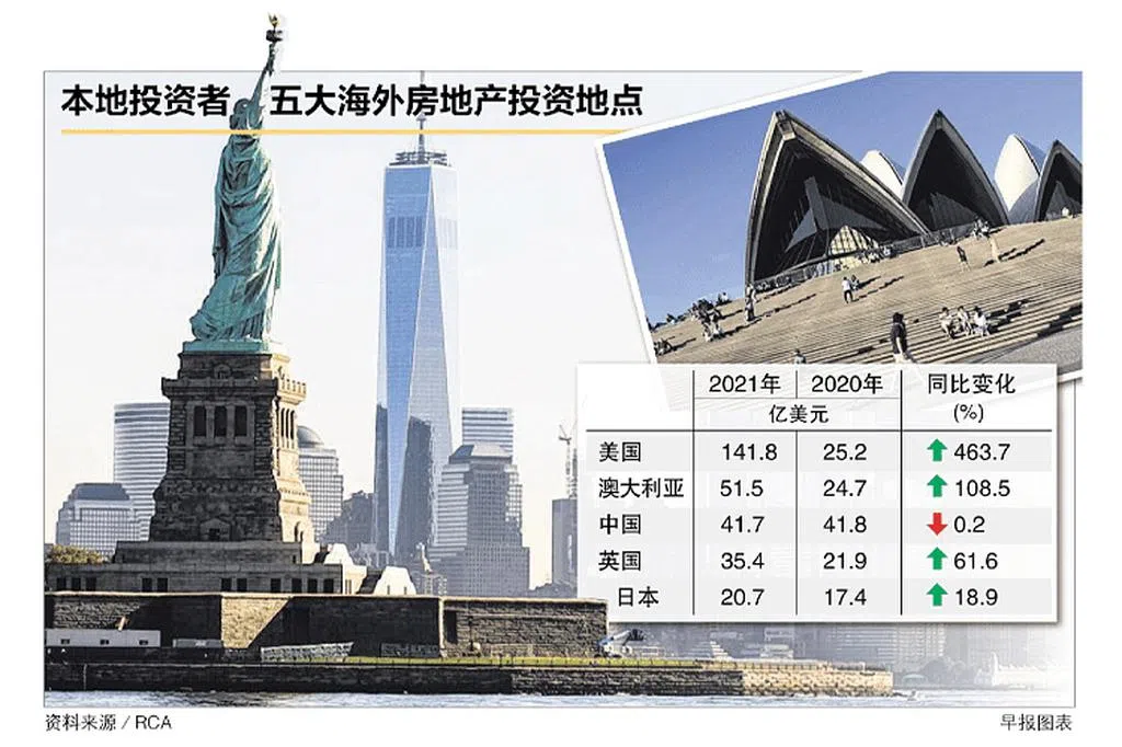 新加坡的海外房地产投资排名全球第四,前三位分别是美国(463亿美元)、加拿大(195亿美元)和英国(101亿美元)。