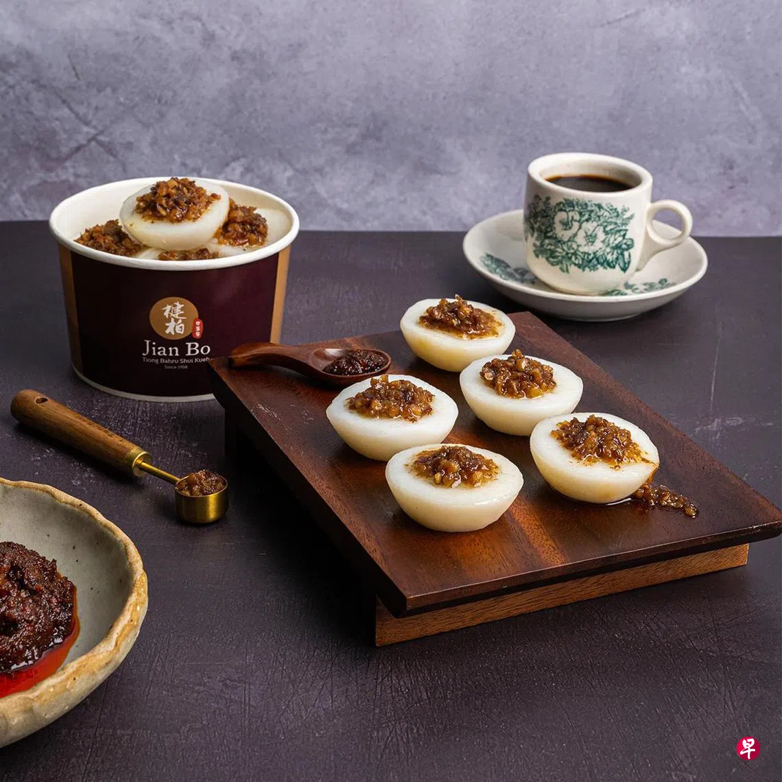 尽管制作水粿的原材料成本上涨许多,但是楗柏水粿保持90%以上的传统配方,不轻易更换。洪政扬说,水粿一贯采用传统蒸米制作,磨米也采用半人工,虾米、菜脯、辣椒等酱料都是员工亲力亲为炒制,由他亲自在中央厨房培训。员工需要三到五个月掌握制作方法。光是菜脯就包含18到20种材料,材料每天新鲜生产。公司十多年前推出“楗柏四宝”——水粿、猪肠粉、糯米饭和芋头糕。