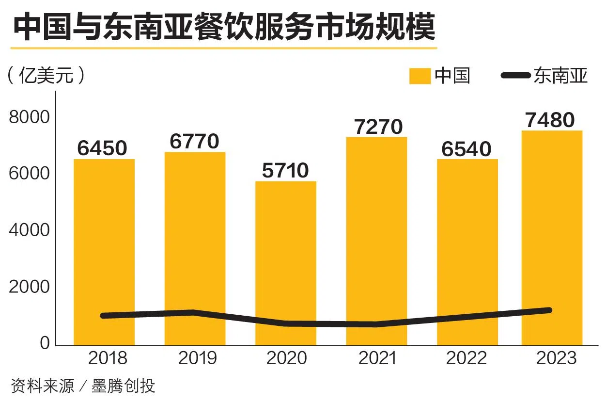 截至2024年底,已有60多个中国品牌在东南亚开设超过6100家门店,东南亚餐饮市场规模在2024年增长了4.6%,达1329亿美元(约1819亿新元)。