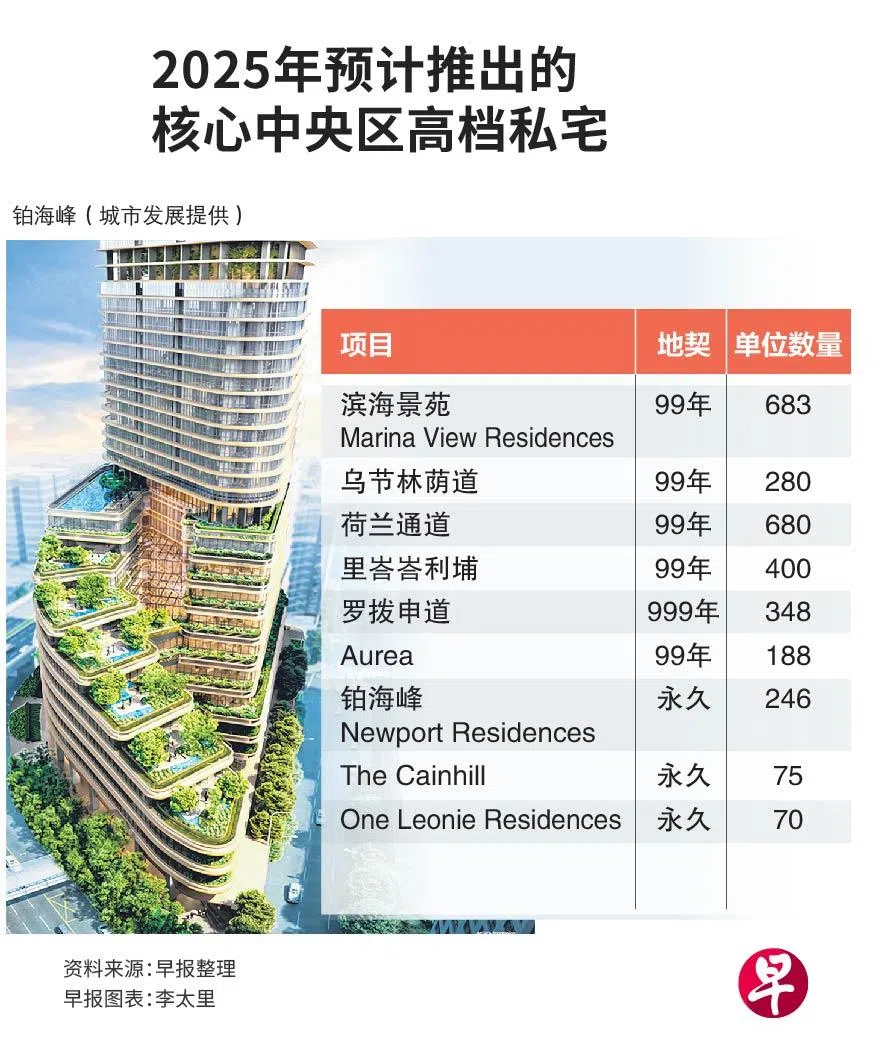 自2021年来,高档私宅的推出量有所减少,今年,代表高档私宅的核心中央区(CCR)预计推出九个项目,共约3600个单位。