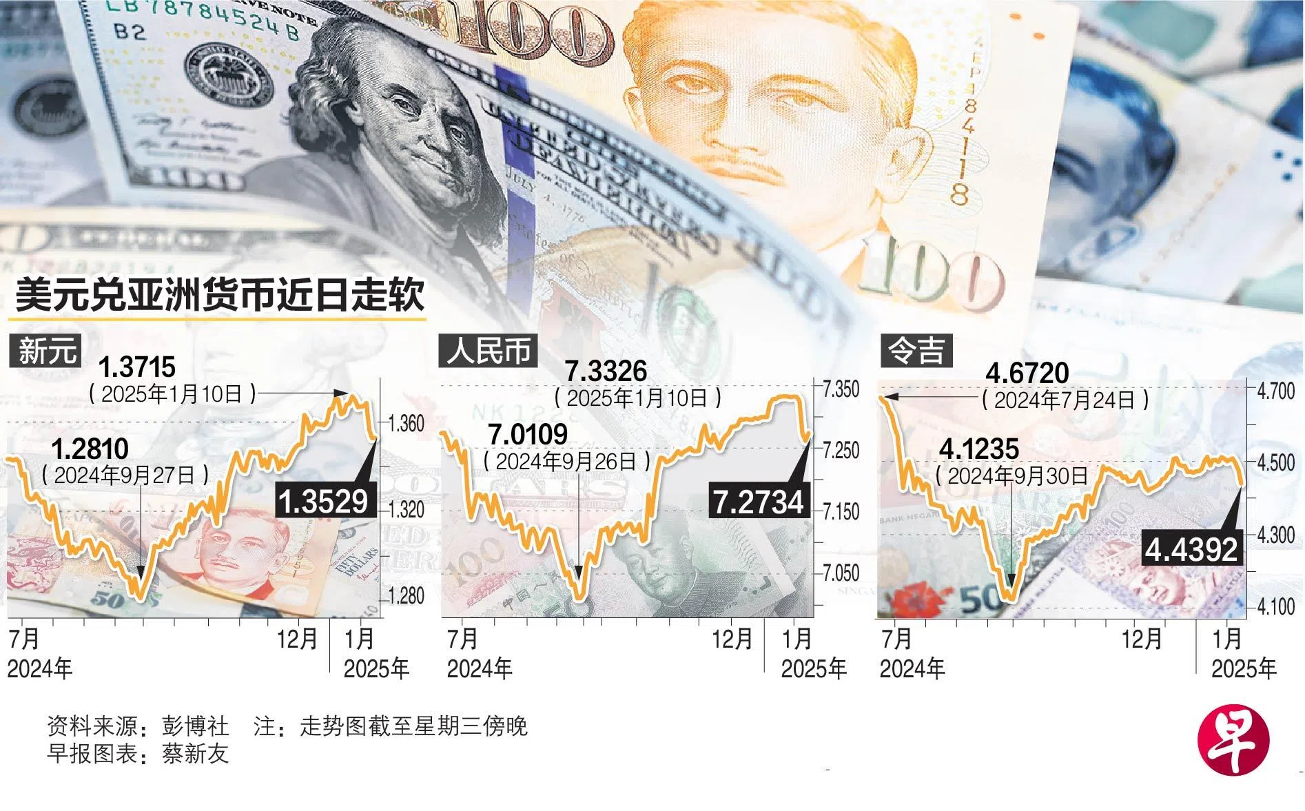 华侨银行外汇策略师黄经隆星期三(22日)接受《联合早报》访问时说:“由于美国尚未宣布加征关税,这为韩元、人民币、令吉、新元等亚洲货币带来了喘息机会。然而,关税的时间、幅度和产品范围仍然存在不确定性。”他举例说,特朗普在星期三上午(美国时间星期二)提到,计划在2月1日对中国加征10%的关税,以回应芬太尼等鸦片类药物经由中国流入加拿大、墨西哥,再进入美国的情况。
