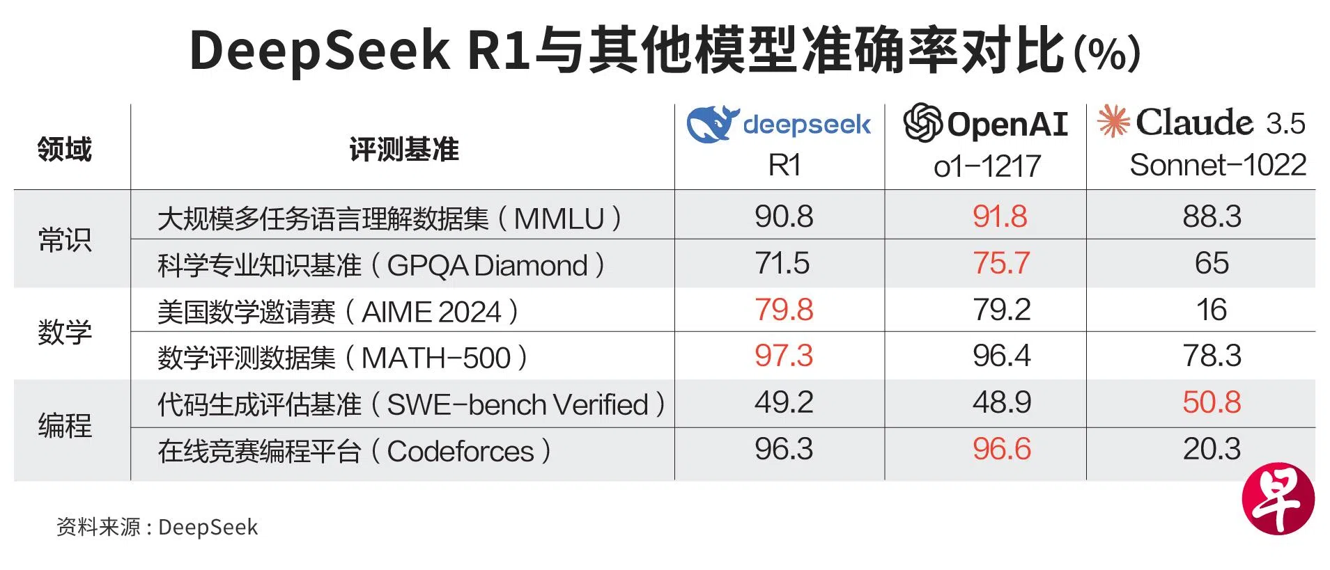 DeepSeek于1月20日发布开源大模型R1,以极低训练成本达到与OpenAI最新模型相近的性能,引发市场对美国公司巨额AI投资的质疑。消息在过去一个周末发酵之后,引发科技股地震。