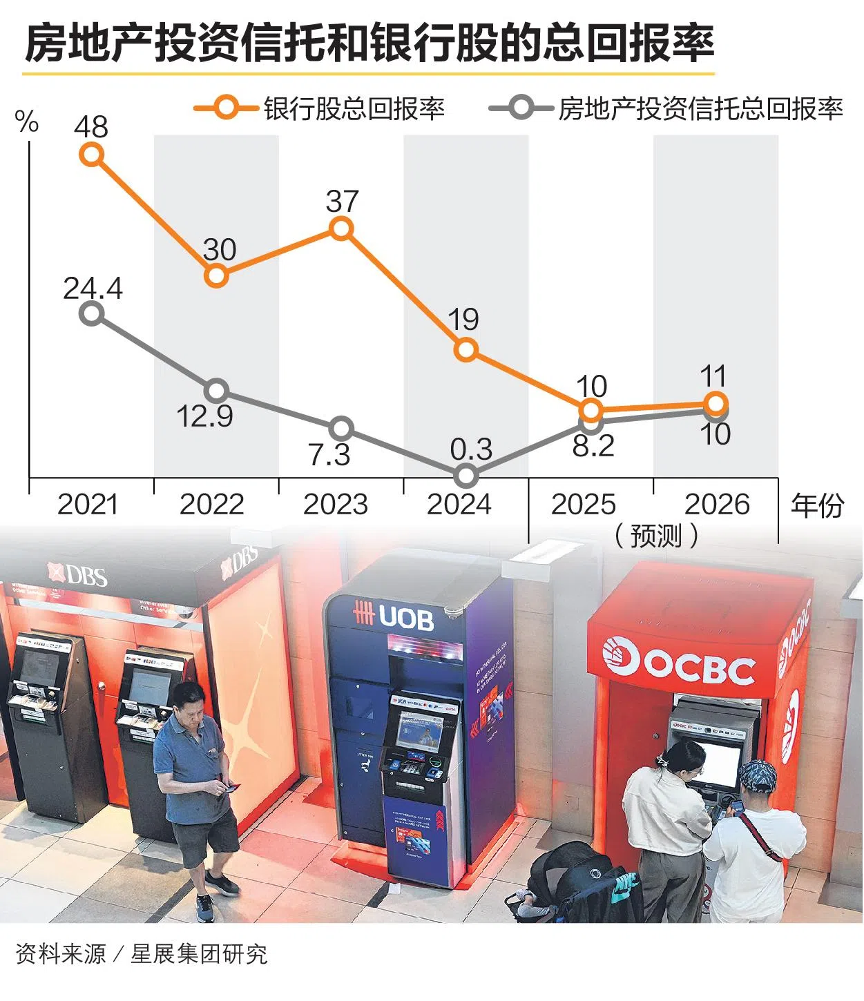 值得关注的是,尽管S-REIT和银行股的走向不同,但总回报率却日趋接近。陈伟祥预测,S-REIT在今明两年的总回报率分别为8.2%和10%,银行股的总回报率则分别为10%和11%,银行股未来的表现未必会继续优于S-REIT。