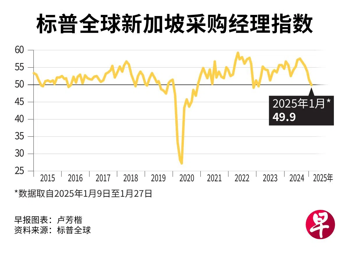 经济活动放缓不是新加坡独有,标普全球星期二发布的1月亚细安采购经理指数下降0.3至50.4,仅挨着扩张区间边缘,也为近一年来最低水平。