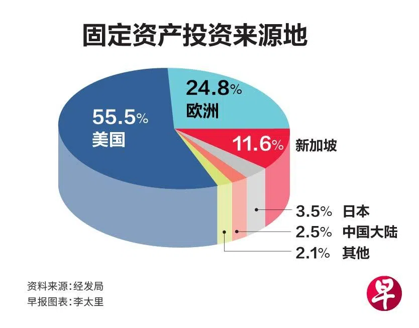 美国保持我国固定资产投资主要来源的地位,占比从2023年的51.9%,增加至去年的55.5%。