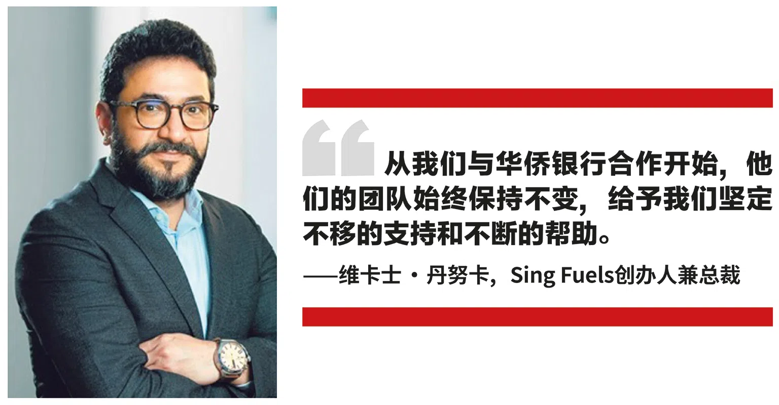 另一方面,从初创到成长,Sing Fuels不断得到华侨银行的支持。尤其是在公司初创时期,华侨银行的援助更是发挥了关键作用。如今,这家燃料供应公司已在全球的350多个港口开展业务,且拥有多元化的产品组合和服务。