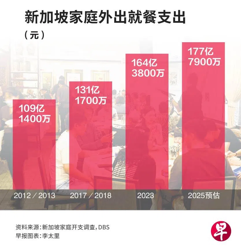星展集团(DBS)在最新发布的报告中指出,2023年新加坡家庭在餐饮服务上的总支出达到了160亿元,过去10年的复合年增长率(CAGR)为4%。报告认为,这一增长主要由家庭收入提高所带动,同时人口增长也起到一定积极作用。预计在今年,受国内需求推动,餐饮销售额将继续以4%的增速增长,达到178亿元。