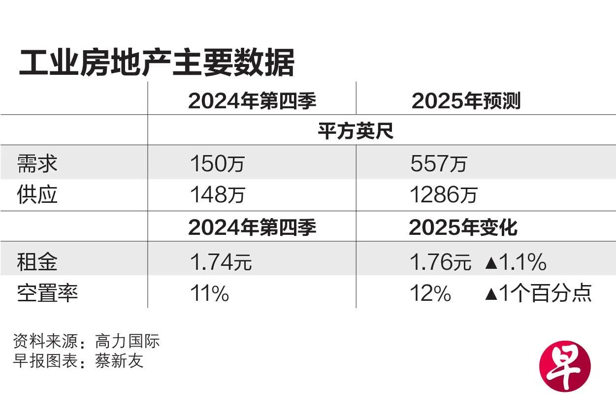 尽管分析师预测2025年的工业房地产领域仍会面对逆风,但由于一些新增空间已预先取得承诺租约,今年工业房地产的空置率和租金预料持稳。