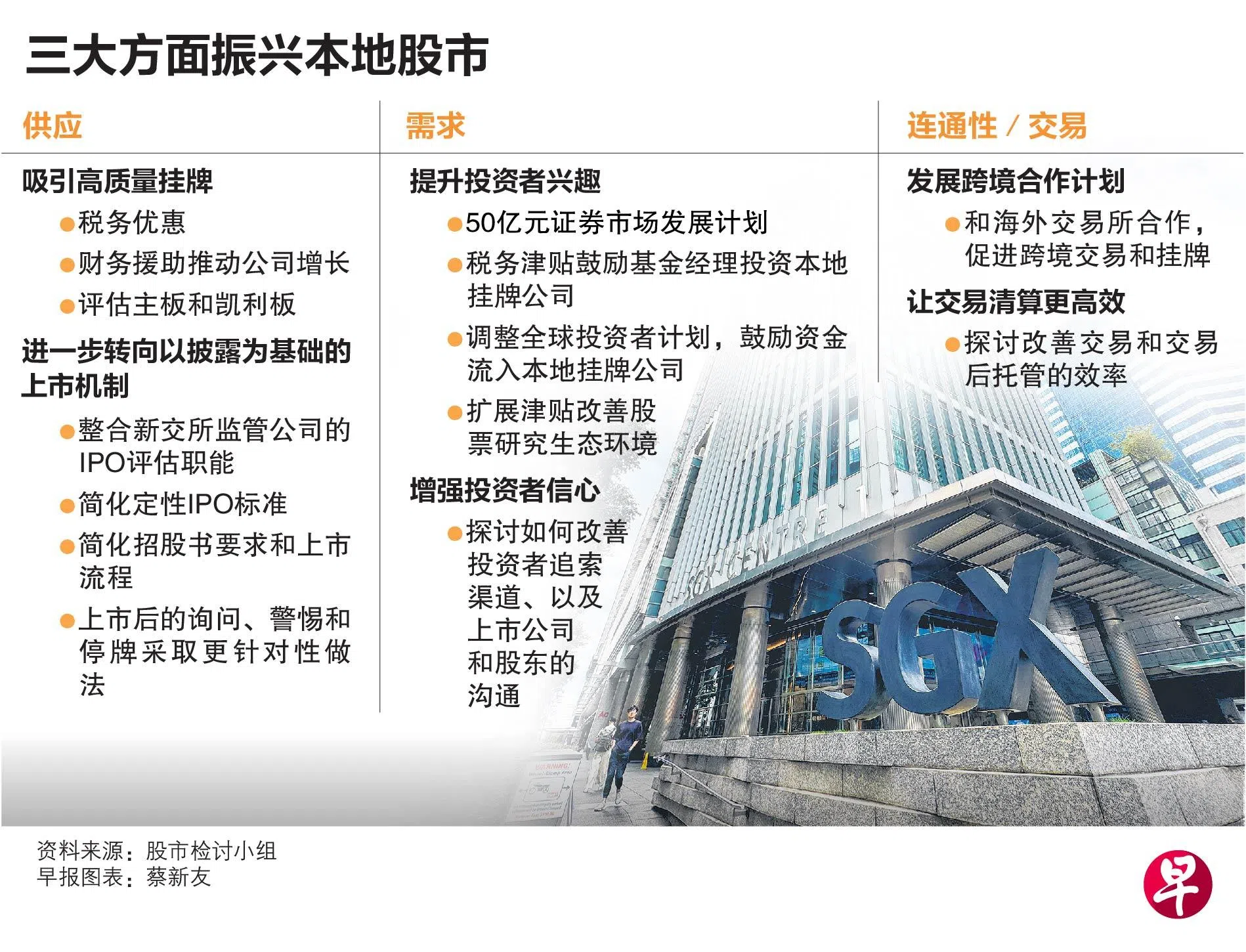 新加坡金融管理局证券市场检讨小组星期五(2月21日)宣布,一系列改善我国资本市场发展的建议和举措。