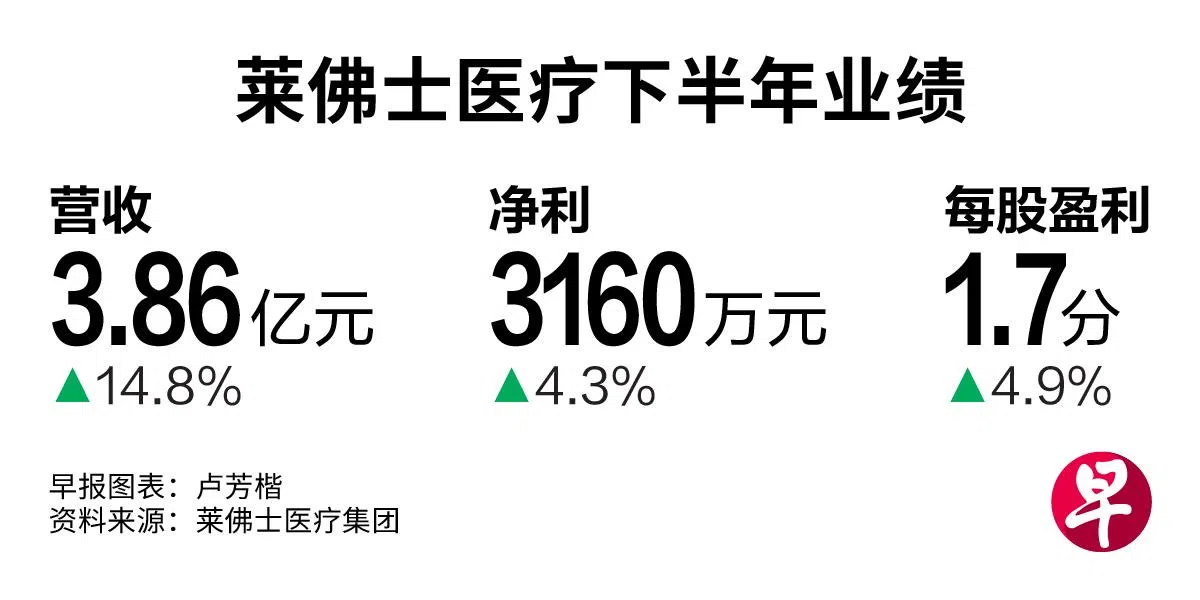 医院服务收入良好,加上区域业务营收增长,莱佛士医疗集团(Raffles Medical Group)去年下半年净利增长4.3%。集团也宣布在未来两年内,回购最多1亿股普通股。