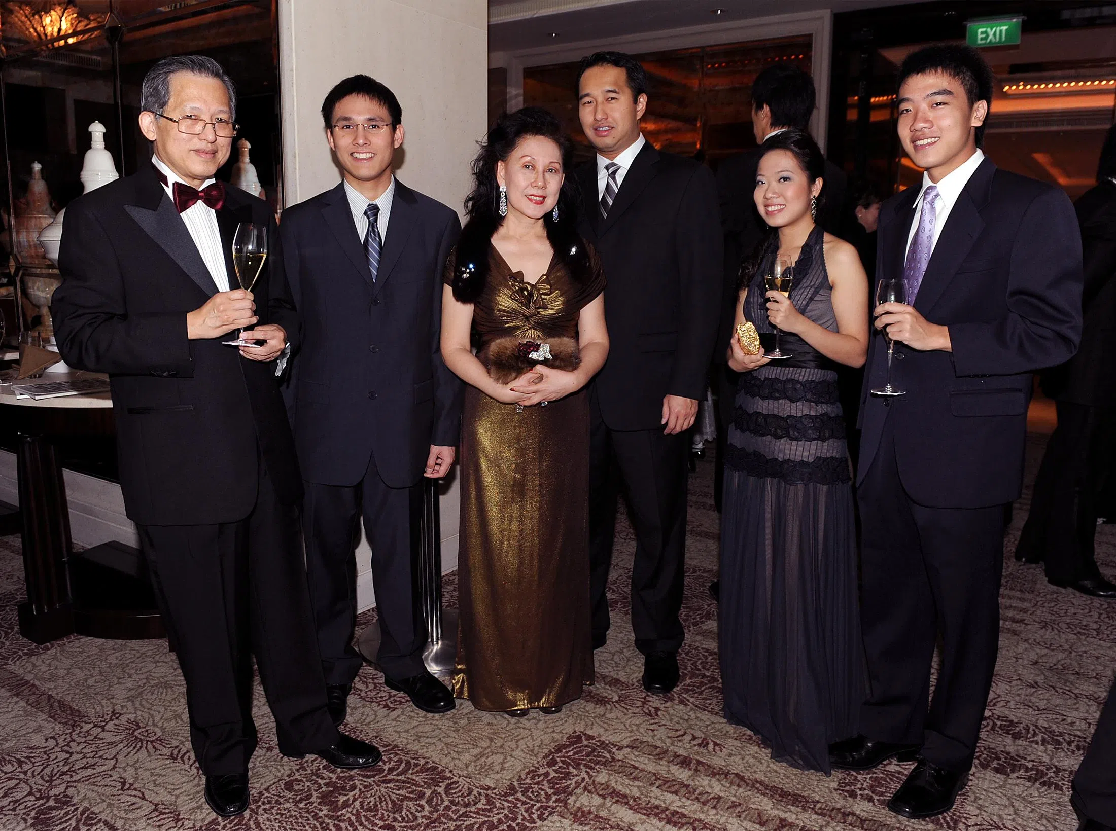 出席社交场合的郭令明夫妇(左一、左三)与长子郭益智(右三)和幼子郭益慧(左二)。郭益慧目前没有参与城市发展业务,郭令明在一次媒体访问中提到,幼子对家族业务没有兴趣,而他不会逼迫孩子做他们不想做的事情。他说:“如果我的小儿子不感兴趣,为什么要让他和我一起工作呢?你必须对工作充满热情,并了解你需要解决的细节,否则就只是不断地做报告而已。”(档案照片)