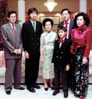 郭令明有两个儿子。长子郭益智(左二)和幼子郭益慧(右三)。幼子郭益慧比哥哥小五岁,今年44岁,是一名风险投资人。左起:郭令明、他的长子郭益智、继母黄秀贞、幼子郭益慧、已故父亲郭芳枫、妻子郭佩玲。(城市发展提供)