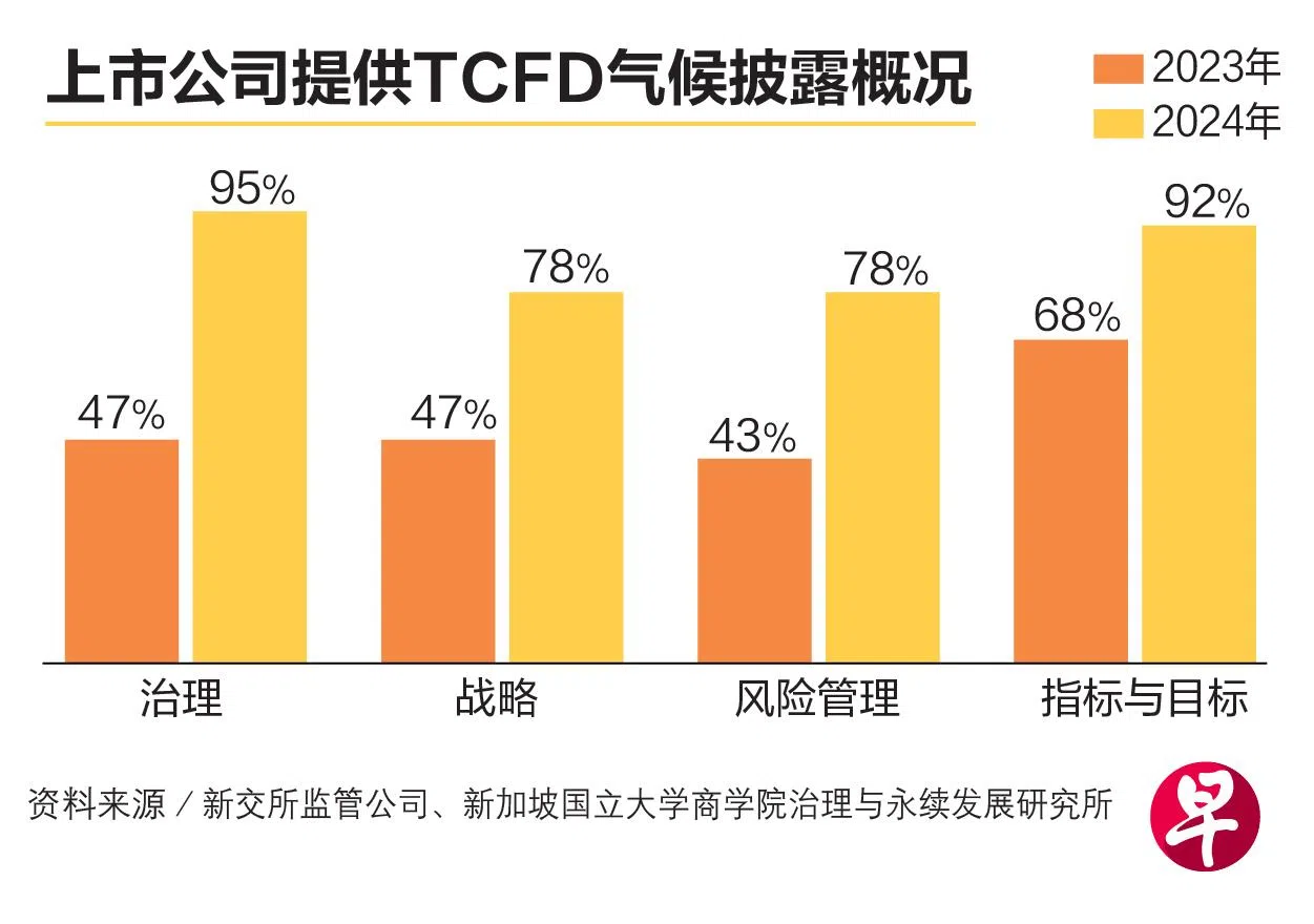 新交所监管公司(SGX RegCo)与新加坡国立大学商学院治理与永续发展研究所,星期一(3月10日)发布的“2024年气候报告审查”指出,尽管本地上市公司在气候报告方面取得显著进展,但与全面且高质量的披露标准相比,仍存在明显差距。