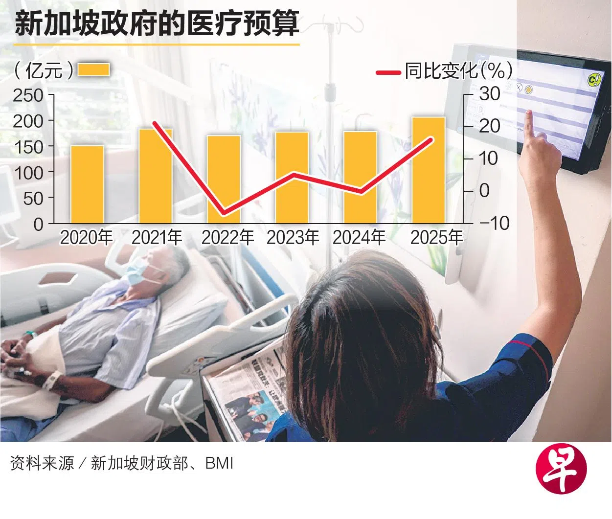 Fitch Solutions旗下研究机构BMI发表的最新研究报告显示,新加坡2025财政年预算案的重点之一是医疗保健,政府也大幅增加这方面的预算,达到209亿元,让更多人能负担得起医药费,以及进行预防性护理。卫生部获得的这笔拨款,是仅次于国防部的第二大拨款。