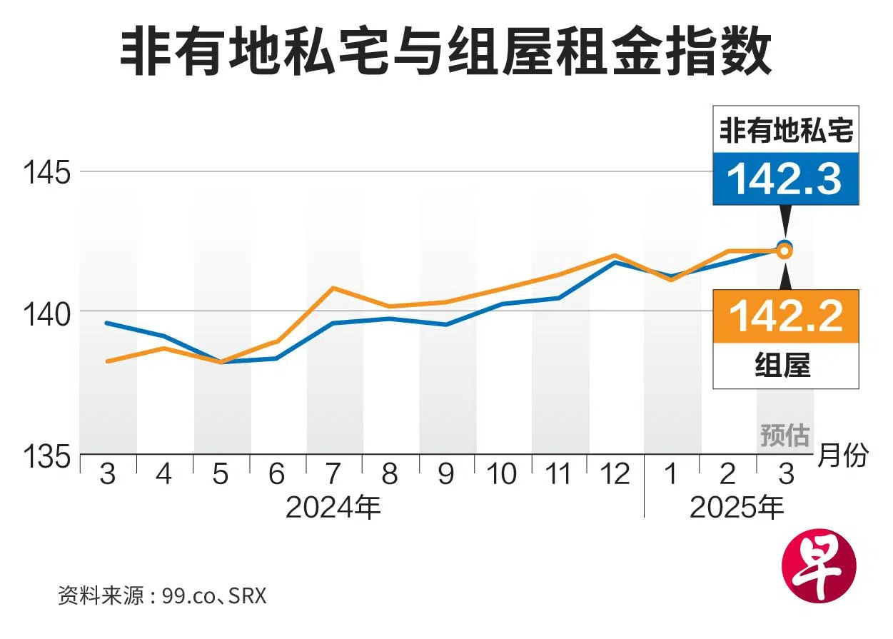房地产网站99.co和新加坡房地产联合交易网(SRX)星期四(4月17日)公布的预估数据显示,本地私宅3月的整体租金上涨了0.4%,同比增幅则是2%。在租赁交易量方面,3月的租赁量,比2月增长了17.1%,预估达5929个单位。若与去年同期比较,增幅达4%。