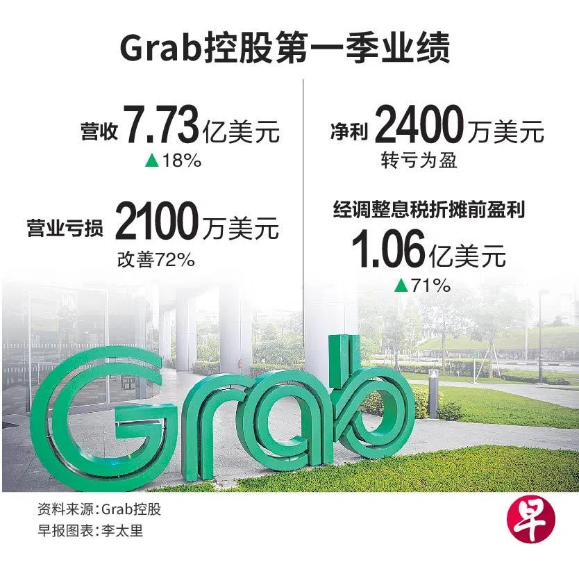 即便宏观经济存在不确定性,召车应用与送餐业者Grab控股公司在截至3月底的第一季仍取得2400万美元(3130万新元)净利,主要因为营业亏损减少和金融收入增加。集团第一季营收同比则增加18%至7亿7300万美元,表现超出市场预期,受益于强劲的召车与送餐需求。
