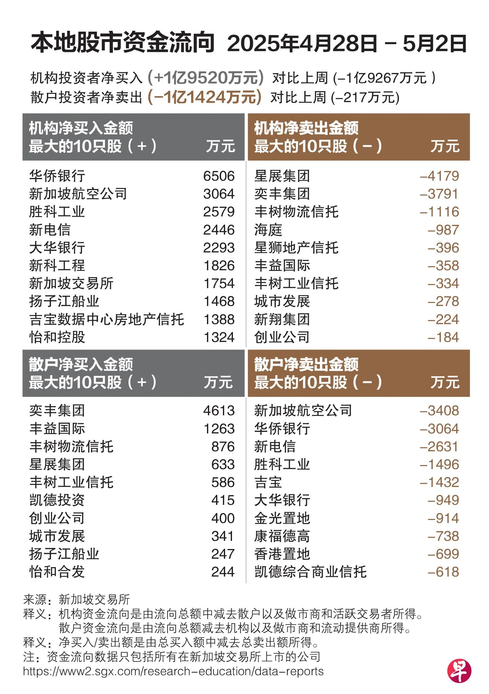 个股消息方面,CSE环球(CSE Global Limited)闭市后宣布,截至今年第一季,公司获得1亿5530万元的新订单,同比下滑11.3%。其中,通信业务贡献6370万元的新订单,同比增长20.4%,原因是集团在亚太地区获得一个变电站无线电通信增强项目,以及近期收购的订单扩大了通信业务在美国的地理分布和市场覆盖范围。