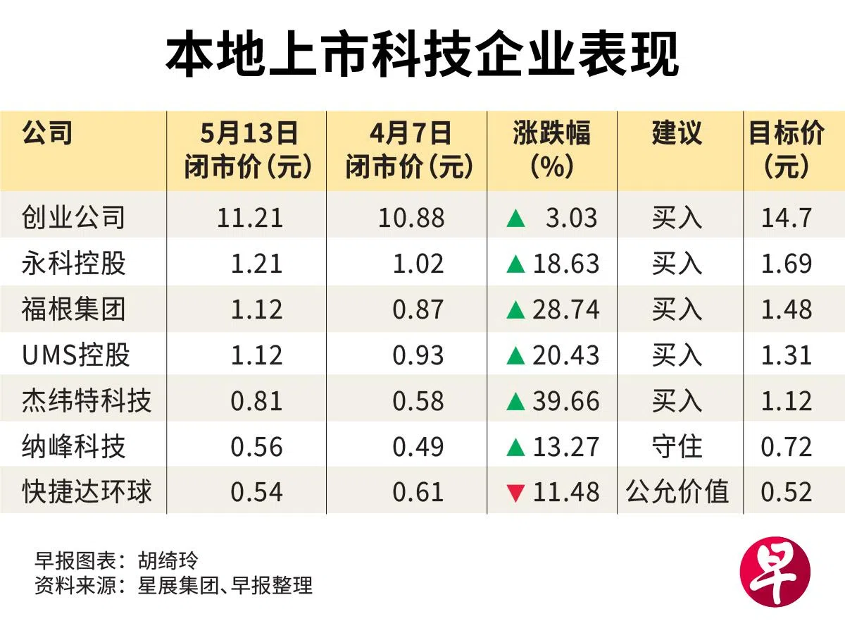 星展研究分析师的科技股中,多数在中美贸易“休战”后大幅回升,部分科技股更从4月初全球股市“黑色星期一”抛售潮的低位反弹近40%,其中包括本地上市公司——杰纬特科技(Grand Venture Technology)。