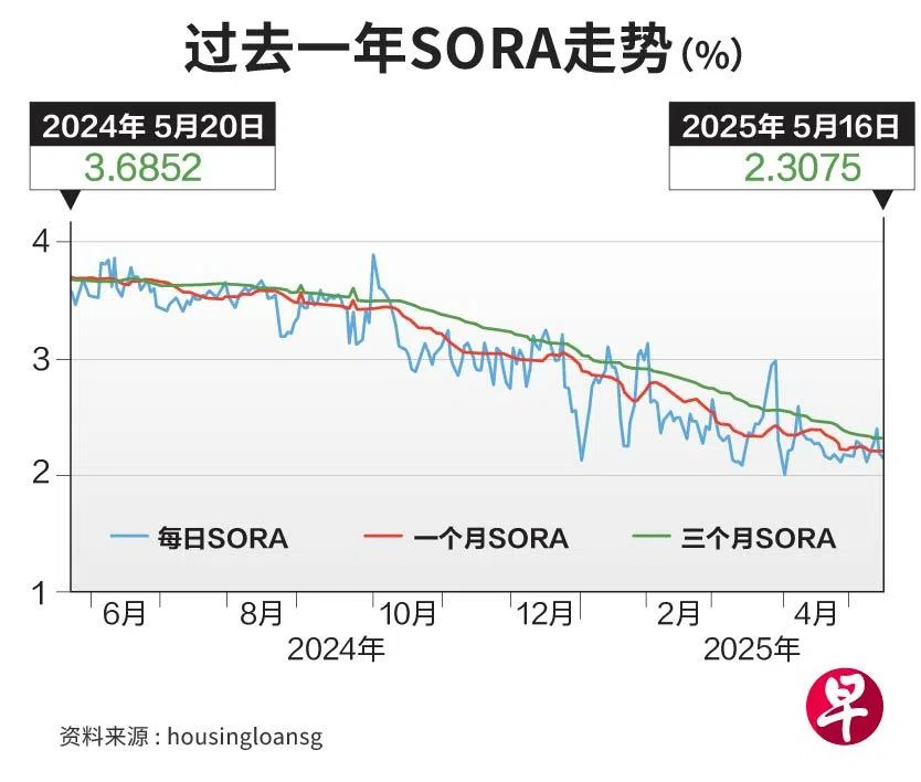 本地三个月新元隔夜利率(SORA)从去年9月底的3.5%降至目前的约2.3%,但这预料不会对新加坡银行的贷款增长,以及信贷成本造成太大冲击。