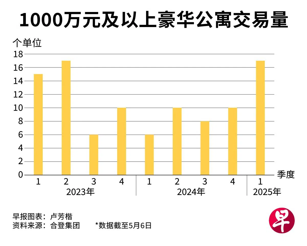 合登的报告指出,成交价在1000万元及以上的豪宅单位,第一季共有17个,显示出市场的兴趣回到2023年第二季的水平。