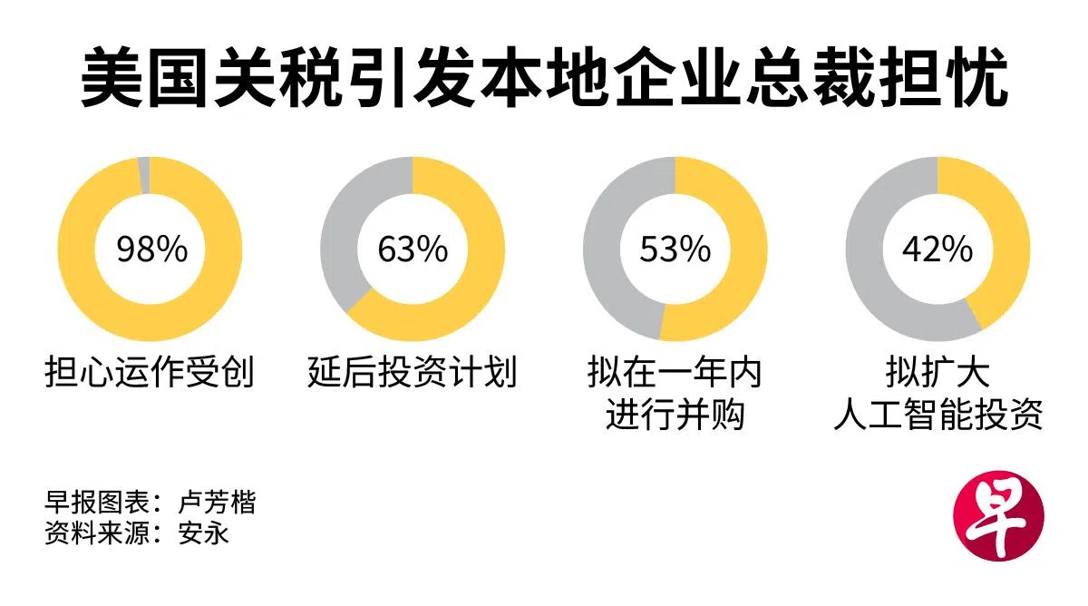 美国加征关税引发新加坡企业高层的不安情绪。一项调查显示,近四成的本地企业总裁对此感到非常担忧,六成公司甚至因为宏观经济前景难料而延后投资计划。