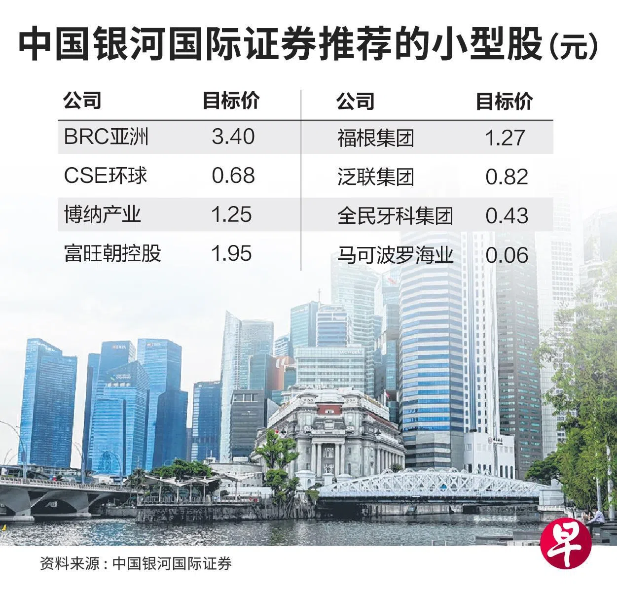 中国银河国际证券也推荐了八只有望受惠于证券市场发展计划的中小型股,其中BRC亚洲、CSE环球、博纳产业属于股息型股票。