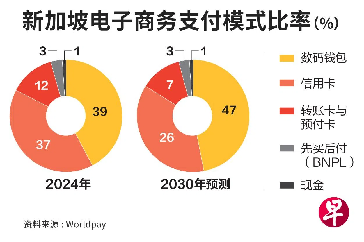 报告的分析指出,新加坡在线上使用数码钱包消费的占比,从2014年的7%大幅增加至去年的39%;线下交易的增长更为显著,同期从1%激增至29%。
