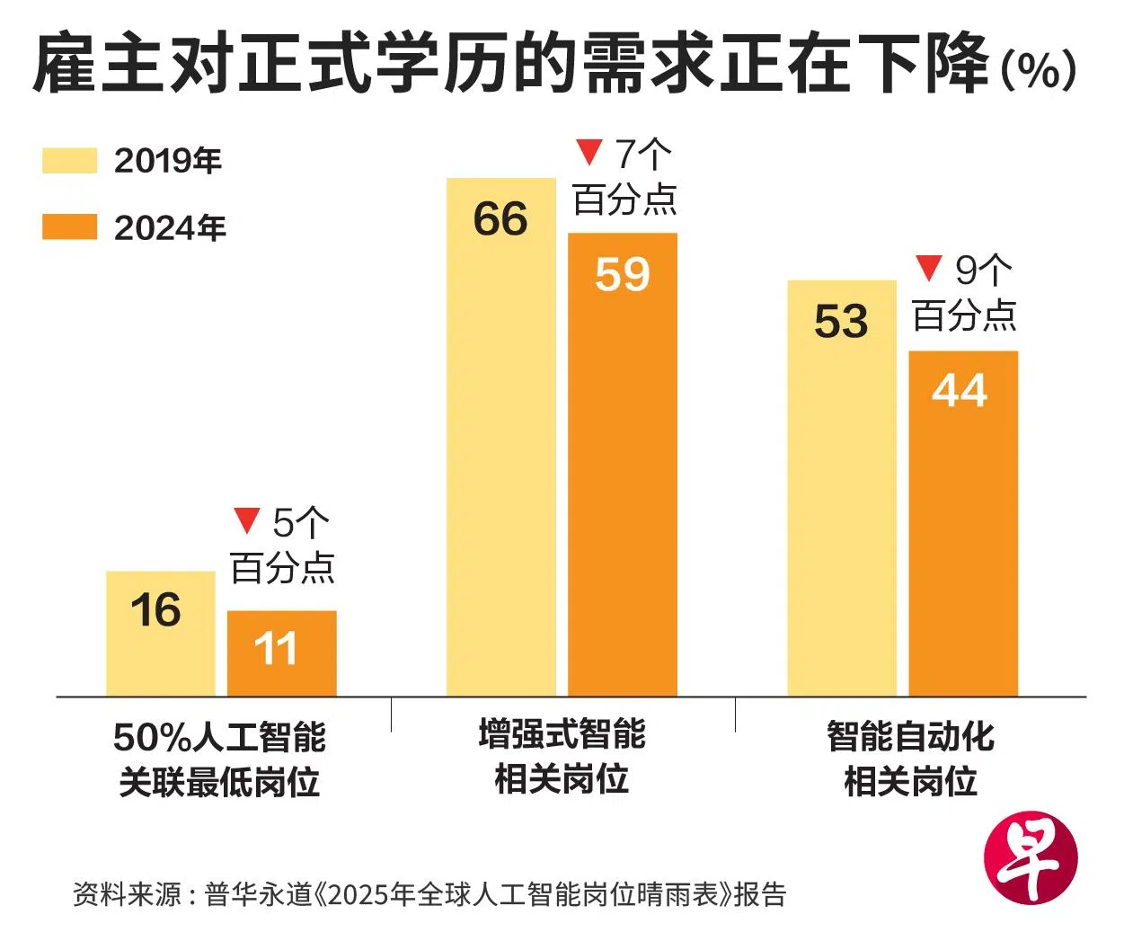 此外,曾被视为职场“敲门砖”的正式学历,在受AI影响的行业中,也正在淡出雇主的招聘需求。