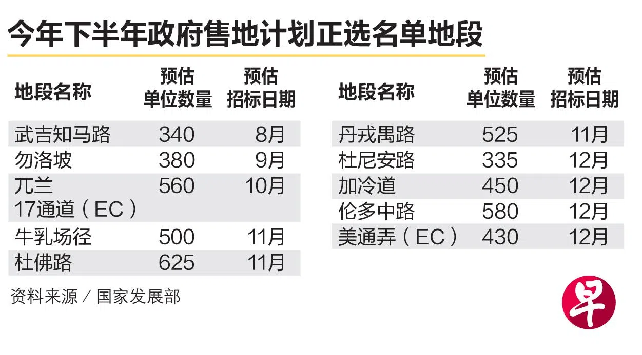 备选地段方面,政府准备了12幅私宅、商用、酒店和白色地段,可建造4475个住宅单位和17万3800平方公尺商业空间,以及880个酒店房间。